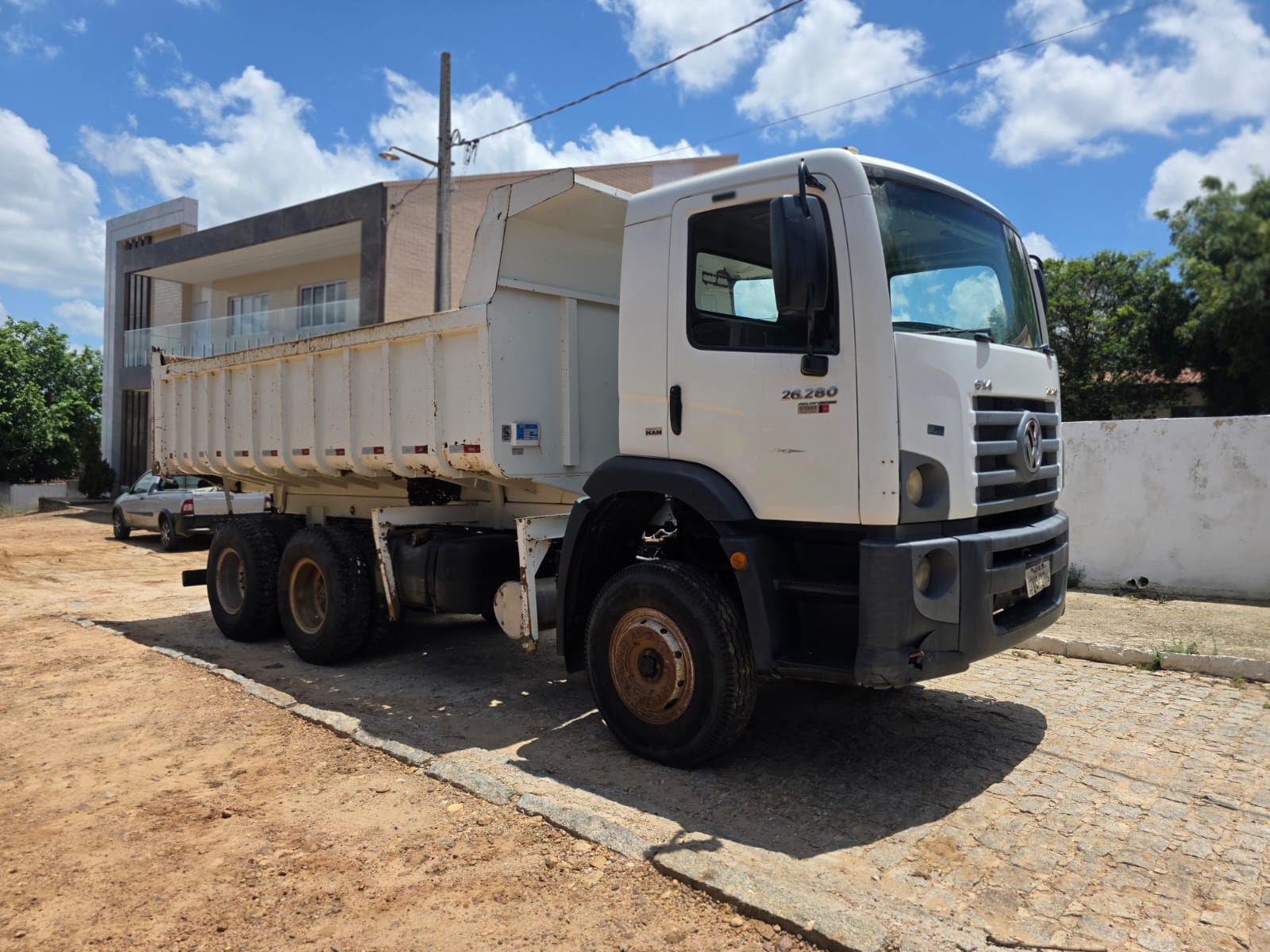 VW/26.280 CRM 6X4 - ANO/MODELO: 2013/2014 – PLACA: OXO-2875 – CHASSI: 953658264ER407491 – RENAVAM: 999289500 – CARROCERIA: BASCULHANTE – COMBUSTÍVEL: DIESEL – COR: BRANCA